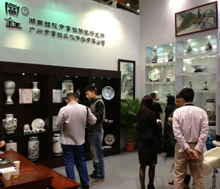 广州市富钰文化传播有限公司参加本届文博会,展出醴陵釉下五彩瓷器荣获“中国工艺美术百花奖”四金两银。