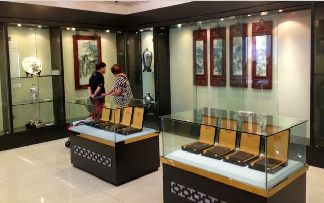 展示出湖南醴陵釉下五彩瓷器、字画、根雕、剪纸、刺绣等工艺品类。